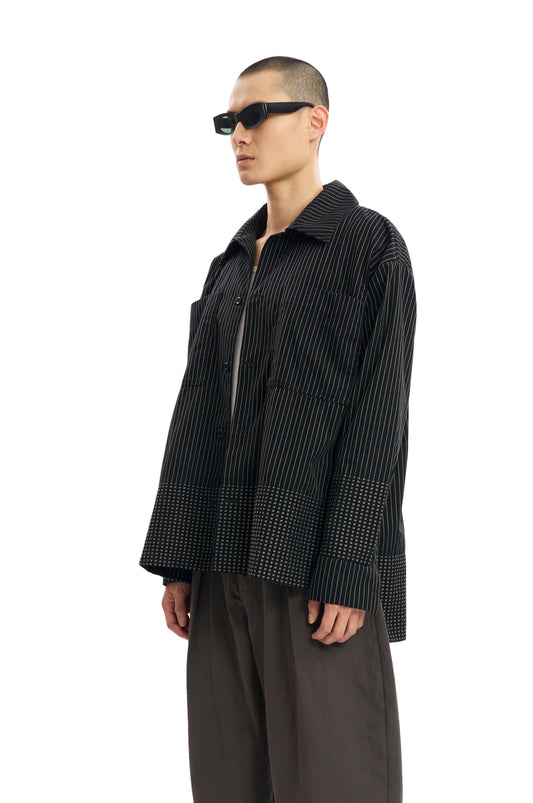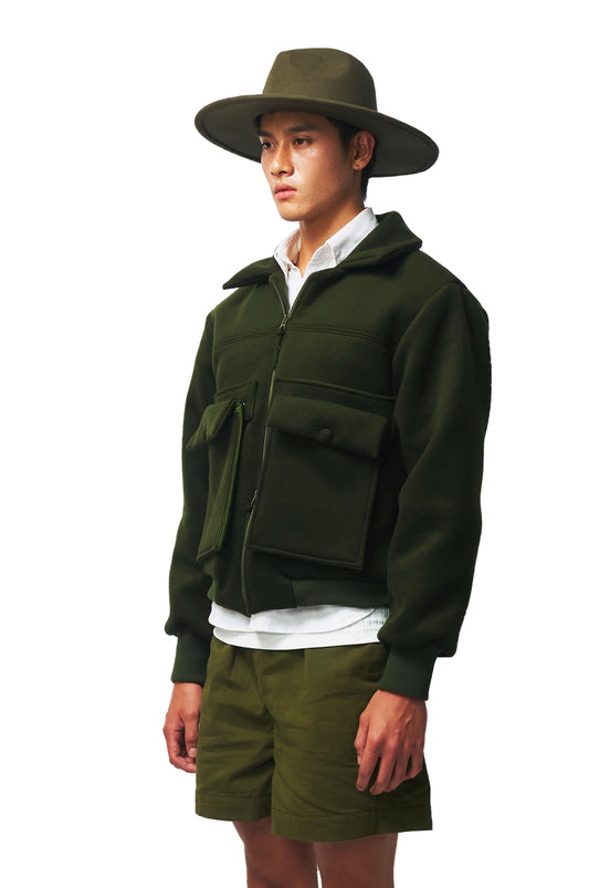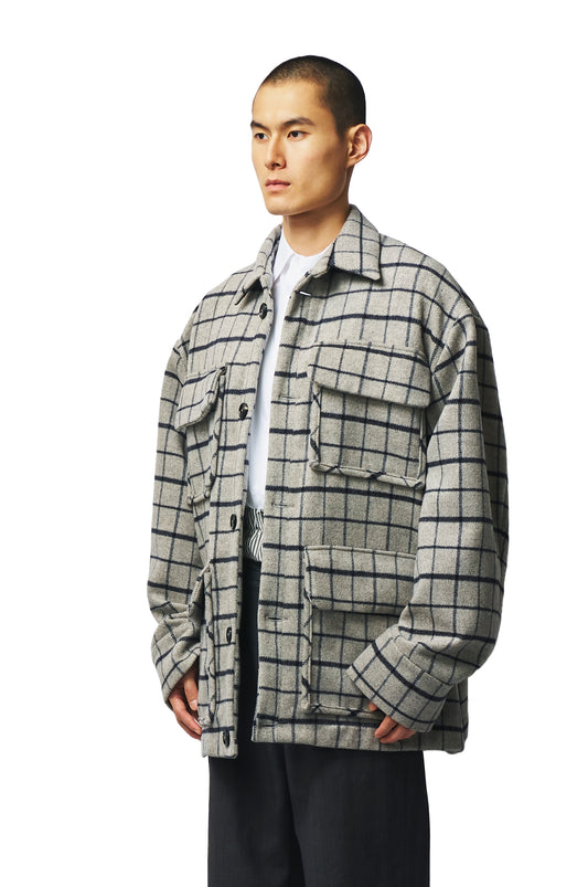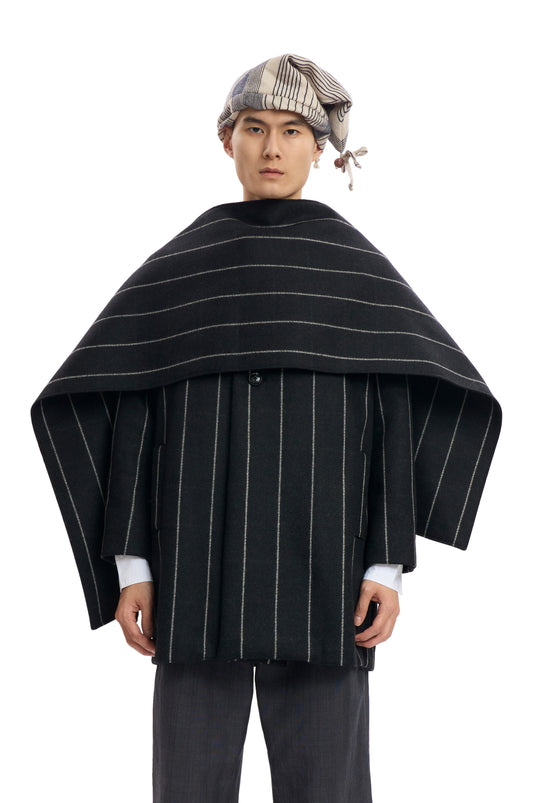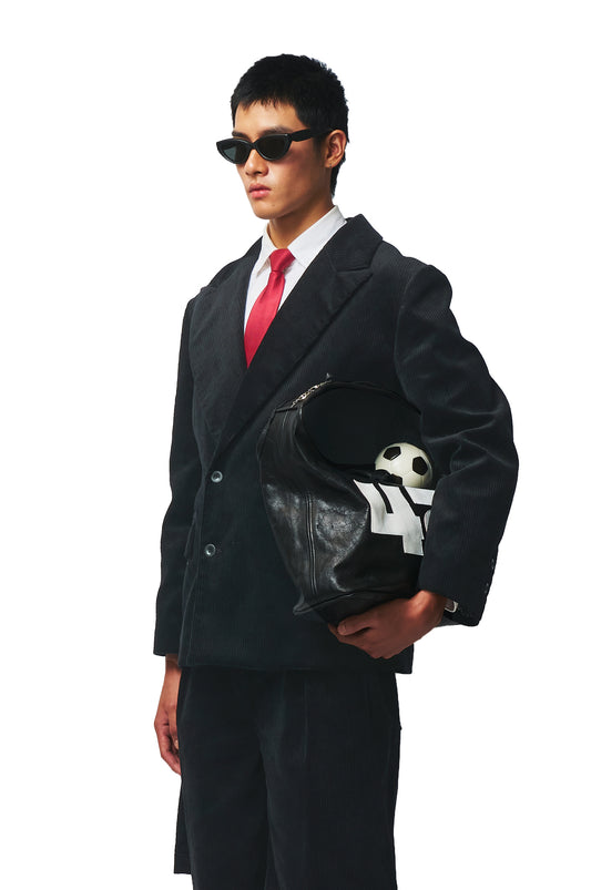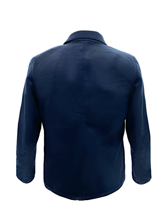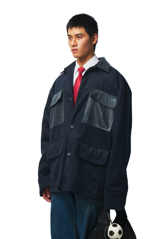 Oversized Navy Wool Coat with Leather Patch Pockets